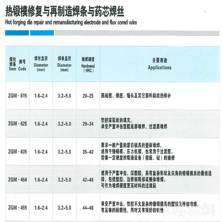 產(chǎn)品名稱:熱鍛模修復與再制造焊條與藥芯焊絲
