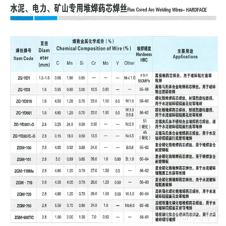 產(chǎn)品名稱:水泥、電力、礦山專用堆焊藥芯焊絲